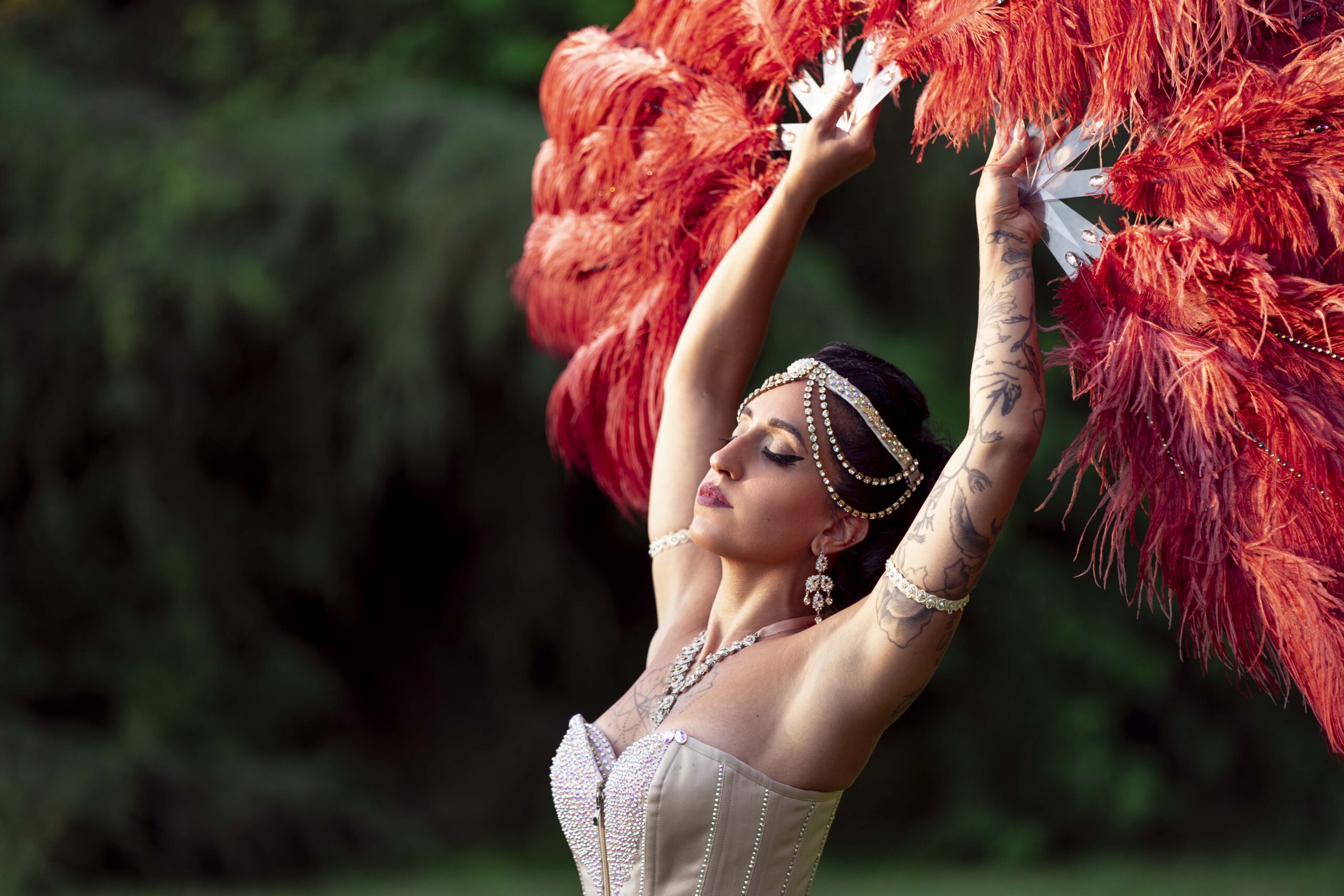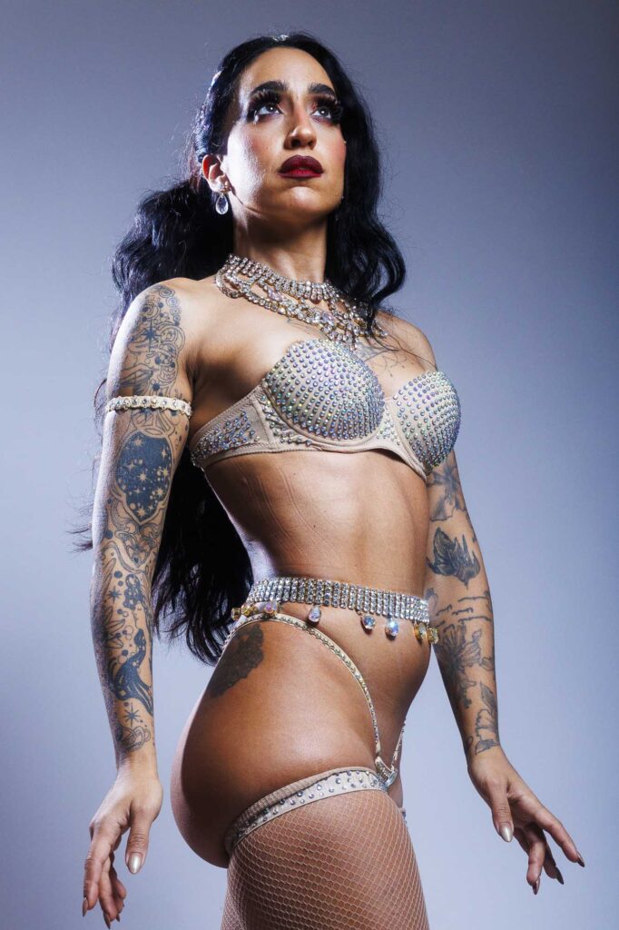 Il burlesque è arrivato nella mia vita durante un viaggio di piacere a Londra, nel 2013. Non ne sapevo nulla, finché una sera mi sono ritrovata in un locale dove si stava svolgendo una battaglia di tassel twirling, l’arte di far ruotare i copricapezzoli sul petto o su altre parti del corpo. Oggi è una delle mie abilità più riconosciute, ma allora era qualcosa di completamente nuovo per me.