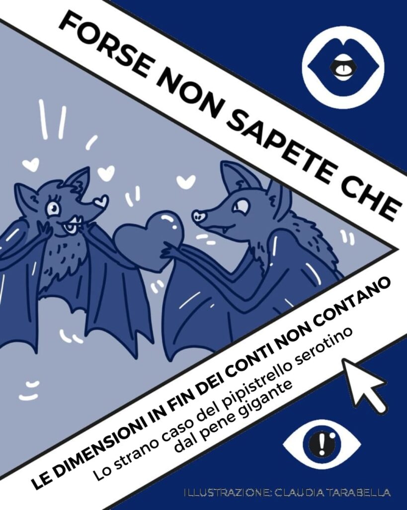 I pipistrelli serotini sono animali riservati: si accoppiano in luoghi nascosti, di notte, sottraendosi ad occhi indiscreti. Insomma, un po’ come la maggioranza degli esseri umani. Ma a differenza della nostra specie, questi pipistrelli hanno una caratteristica sorprendente: il pene del maschio equivale a circa il 22% della sua altezza ed è 7 volte più largo e lungo della vagina della femmina. La domanda su come si accoppino nasce spontanea – soprattutto in chi concepisce la pratica erotica eterosessuale come necessariamente penetrativa.